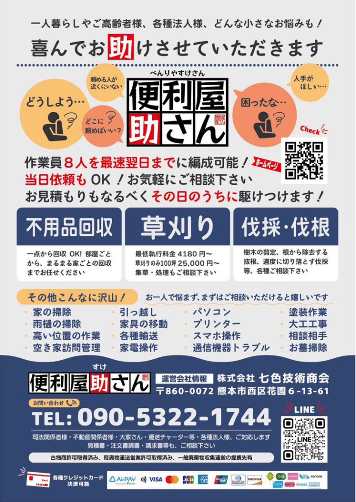 熊本の便利屋助さん、チラシを作りました!!